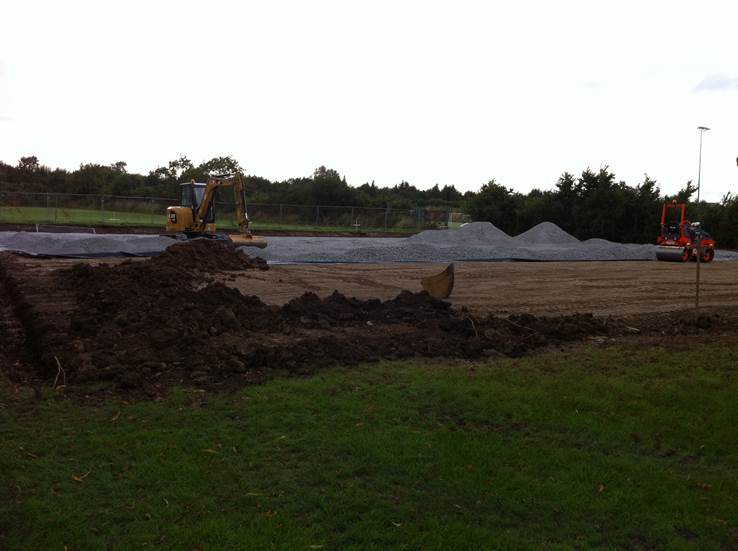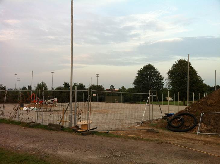 The electric cables have to go from the courts up to the main circuit board in the changing rooms so there is plenty of digging yet to happen.