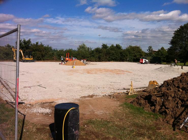 The site has been officially marked out by the contractors and work will start on site on Monday 19th August (weather permitting). The Site Manager, Andy, is looking forward to getting on with the work to build the courts.